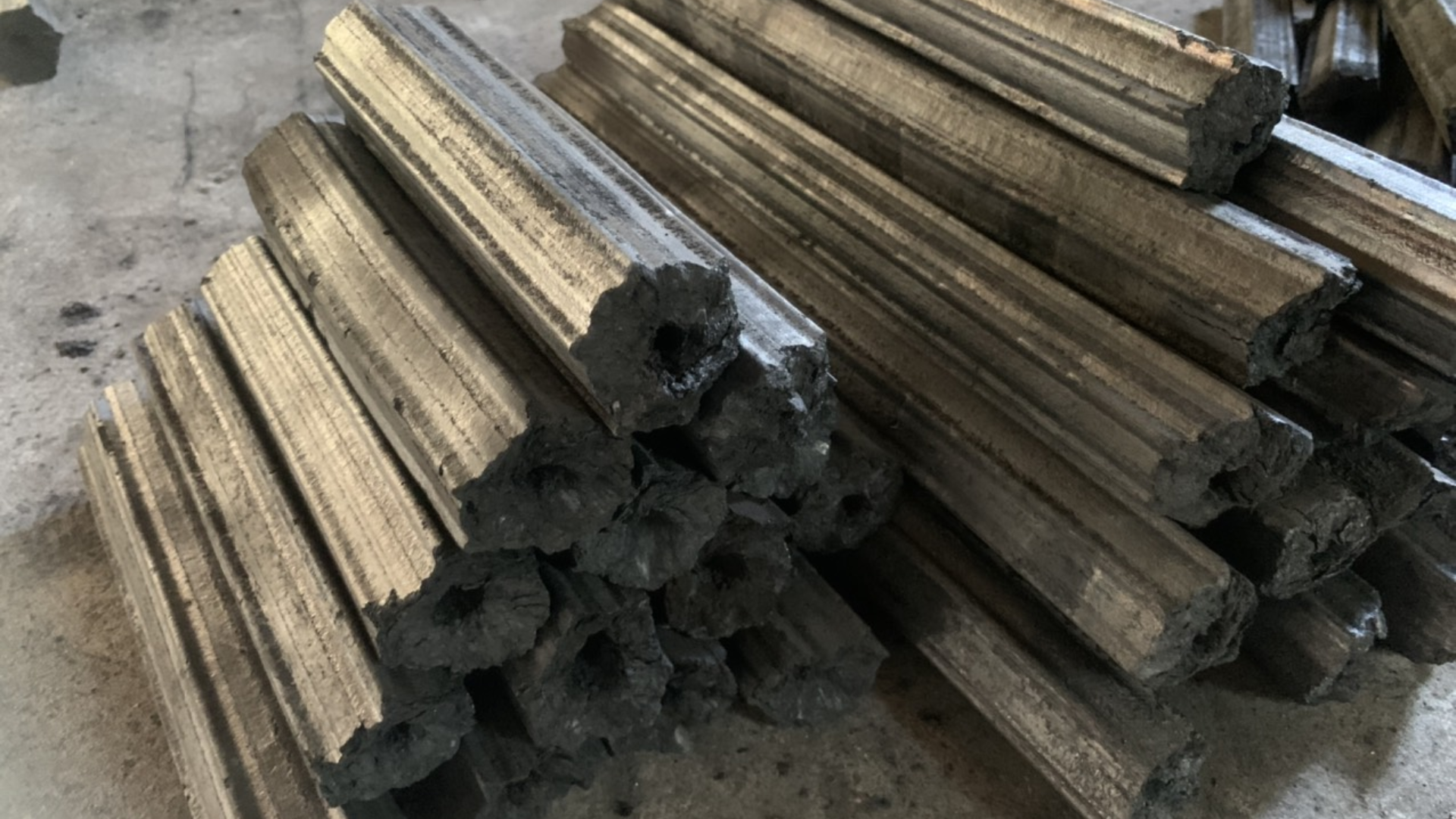 The production process of sawdust charcoal briquettes from start to finish, showcasing modern and sustainable technology
